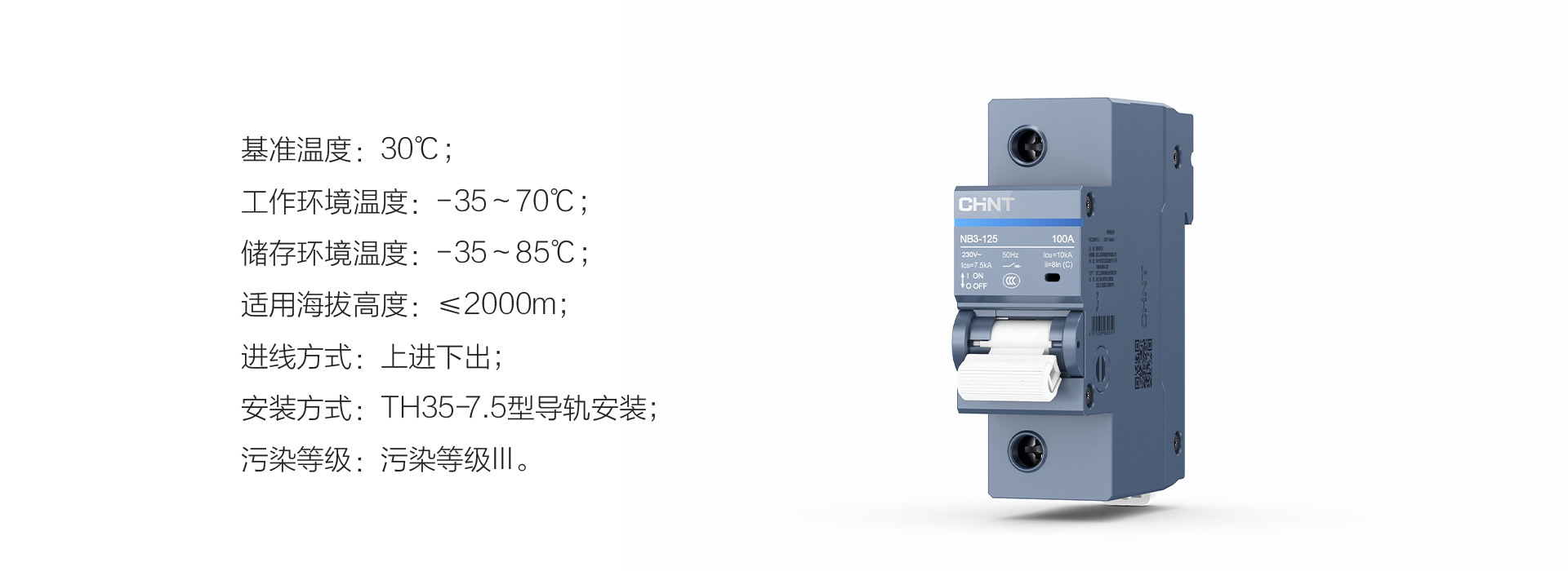 正泰泰極NB3-125斷路器是一款小型斷路器,適用于交流50Hz,額定電壓至230V或400V,額定電流至125A的線路中,起過載和短路保護作用,亦可在正常情況下作為線路的不頻繁通斷之用。